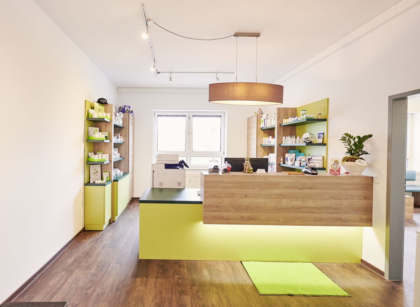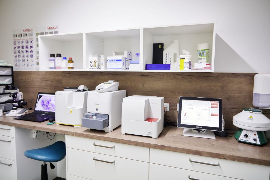 Im Erdgeschoss befinden sich vier Sprechzimmer, ein großzügiger Wartebereich, eine Anmeldung sowie eine gut ausgestattete Operationsvorbereitung und zwei Operationssäle. Zudem stehen zwei Stationen, eine Apotheke, ein Röntgenraum und ein Inhouse-Labor von Idexx zur Verfügung. Der Sozialraum mit Küche, Umkleiden, Lager und Badezimmer mit Dusche sorgt für das Wohl unserer Mitarbeitenden. Ein modernes Ultraschallgerät für Kardio und Innere sowie digitales Röntgen ergänzen unsere Ausstattung. Im ersten Stock befinden sich die Büroräume der Praxismanager, während im zweiten Stock derzeit drei Zahneinheiten und Operationssäle entstehen.