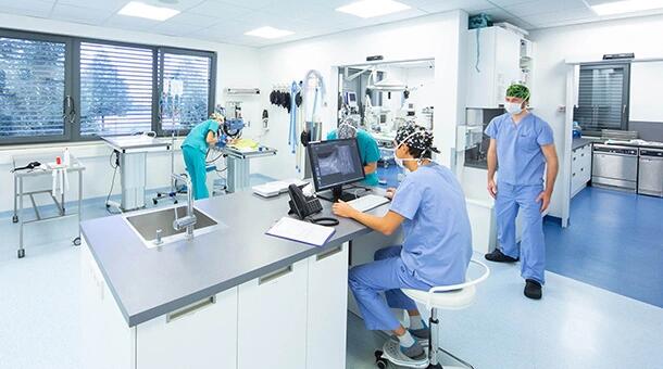 An unserem Standort im Norden Frankfurts arbeitet ein interdisziplinäres Team aus Tierärzt:innen, Tiermedizinischen Fachangestellten, Auszubildenden und Verwaltung, das gemeinsam täglich in vielfältigen Rollen – von Notdienst über OP‑Assistenz bis Station und Poliklinik – im Einsatz ist. Mit einem breiten Spektrum an Fachbereichen wie Chirurgie, Innere Medizin, Orthopädie, Neurologie, Kardiologie, Bildgebende Diagnostik, Zahnheilkunde und Labordiagnostik mit moderner technischer Ausstattung bieten wir sowohl ambulante als auch stationäre Versorgung auf hohem Niveau.