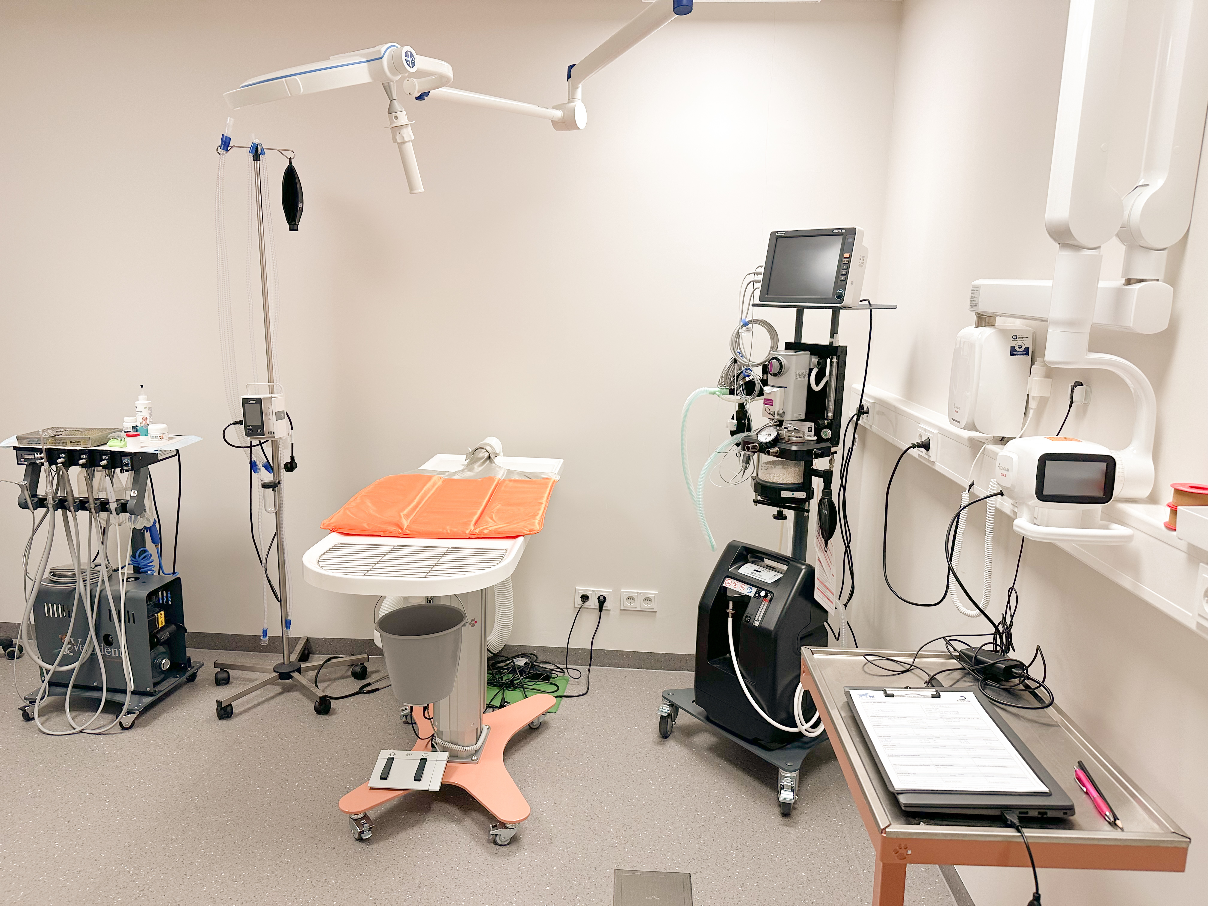 Die Praxis ist großzügig und funktional gestaltet. Neben drei Behandlungsräumen und einem separaten Katzenzimmer verfügt der Standort über einen voll ausgestatteten Physiotherapie-Raum, einen Grooming-Raum sowie einen separaten OP-Raum für Knochenchirurgie inklusive moderner Ausstattung. Auch wenn orthopädische Operationen perspektivisch geplant ist, konzentriert sich das aktuelle Leistungsangebot auf der hoch-qualitativen haustierärztlichen Versorgung inkl. Diagnostik, der Chirurgie, Dentalchirurgie, Bildgebung, Laboruntersuchungen sowie Notfallversorgung während der Öffnungszeiten. Zusätzlich bieten wir an diesem Standort Physiotherapie und Grooming an.