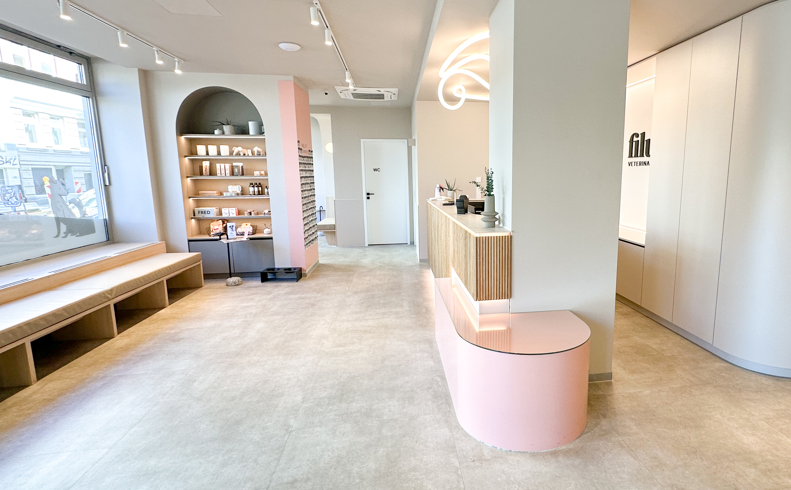 Für das Team bietet der Standort durchdachte Extras: eigene Büroräumlichkeiten für das Praxismanagement, ein separates Vet-Office zur Nachbereitung und Organisation sowie entspannte Pausenbereiche mit einer top ausgestatteten Küche. Hier treffen medizinischer Anspruch und gutes Arbeiten aufeinander – ganz im Sinne unserer filu-sophie.